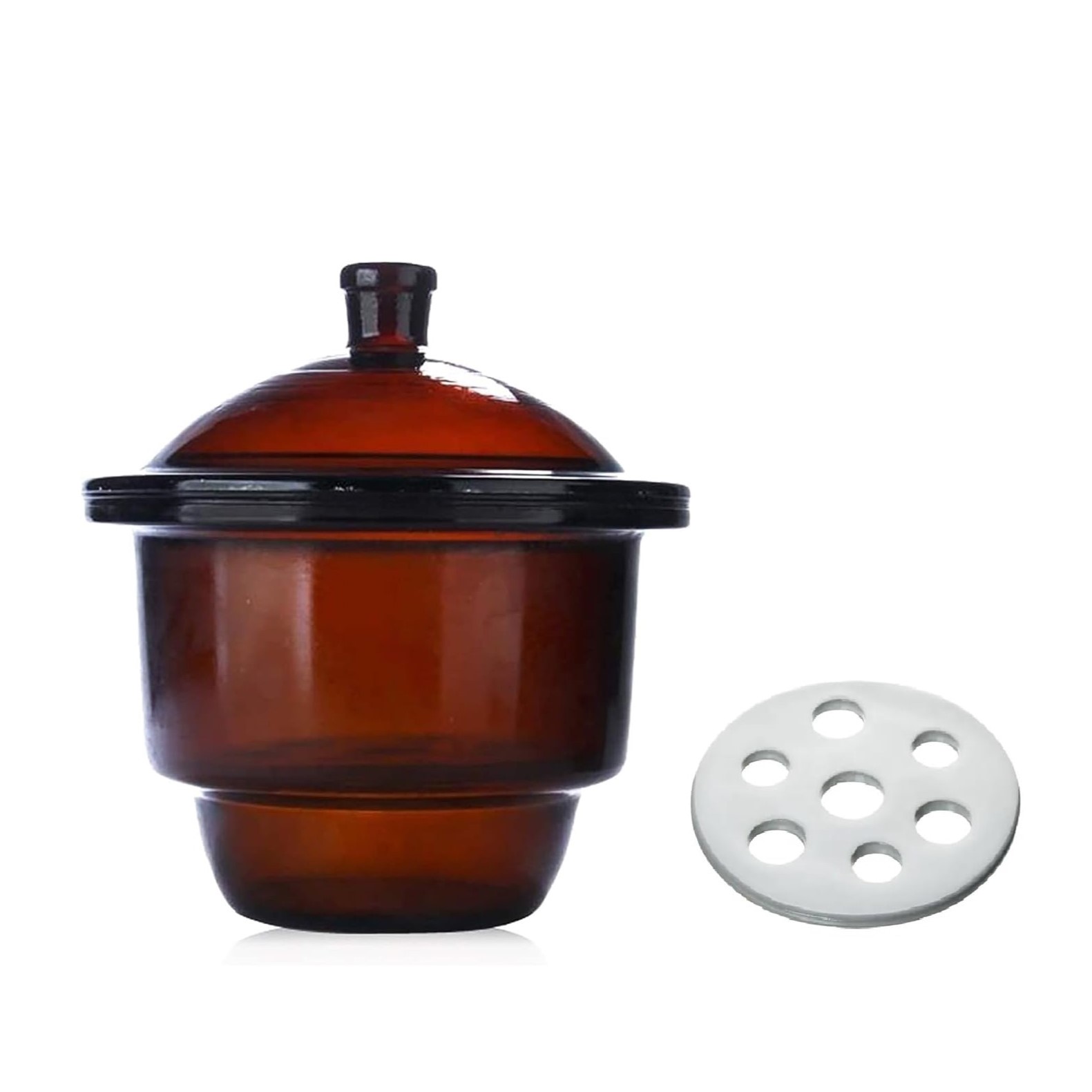 Bình hút ẩm thủy tinh màu nâu (Amber Glass Desiccator) là phiên bản đặc biệt của bình hút ẩm, được làm từ thủy tinh nâu có khả năng chống tia UV và ánh sáng.