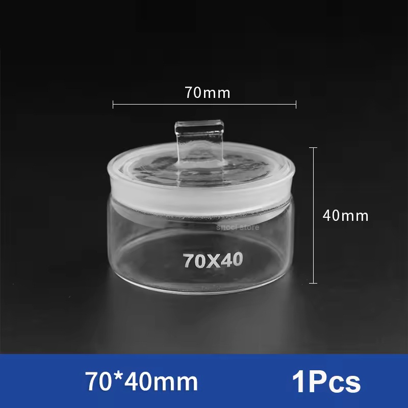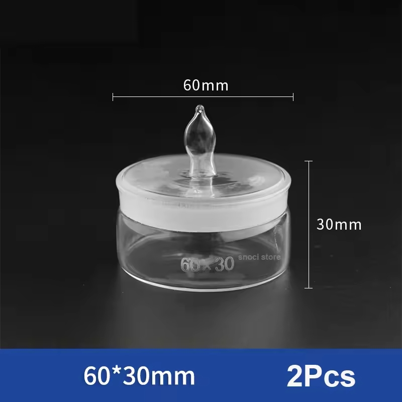 Chén cân được làm bằng thủy tinh có nắp mài kín, giúp hạn chế hút ẩm từ không khí.