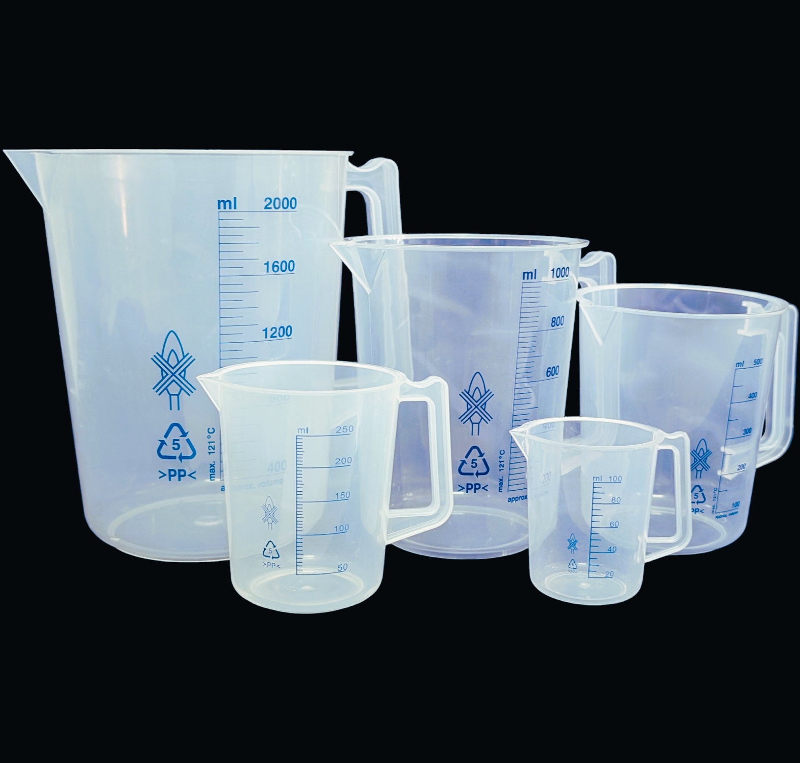 100ml, 250ml, 500ml, 1000ml, 2000ml, 3000ml, 5000ml