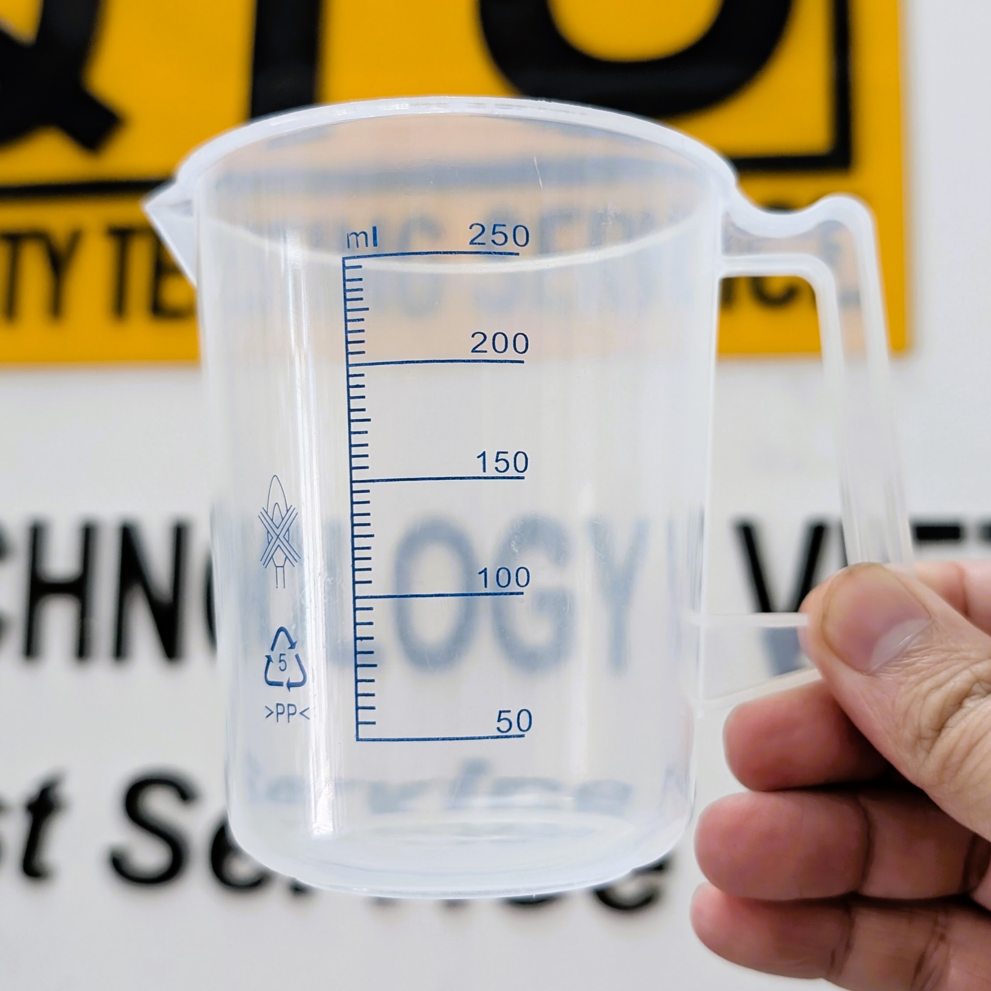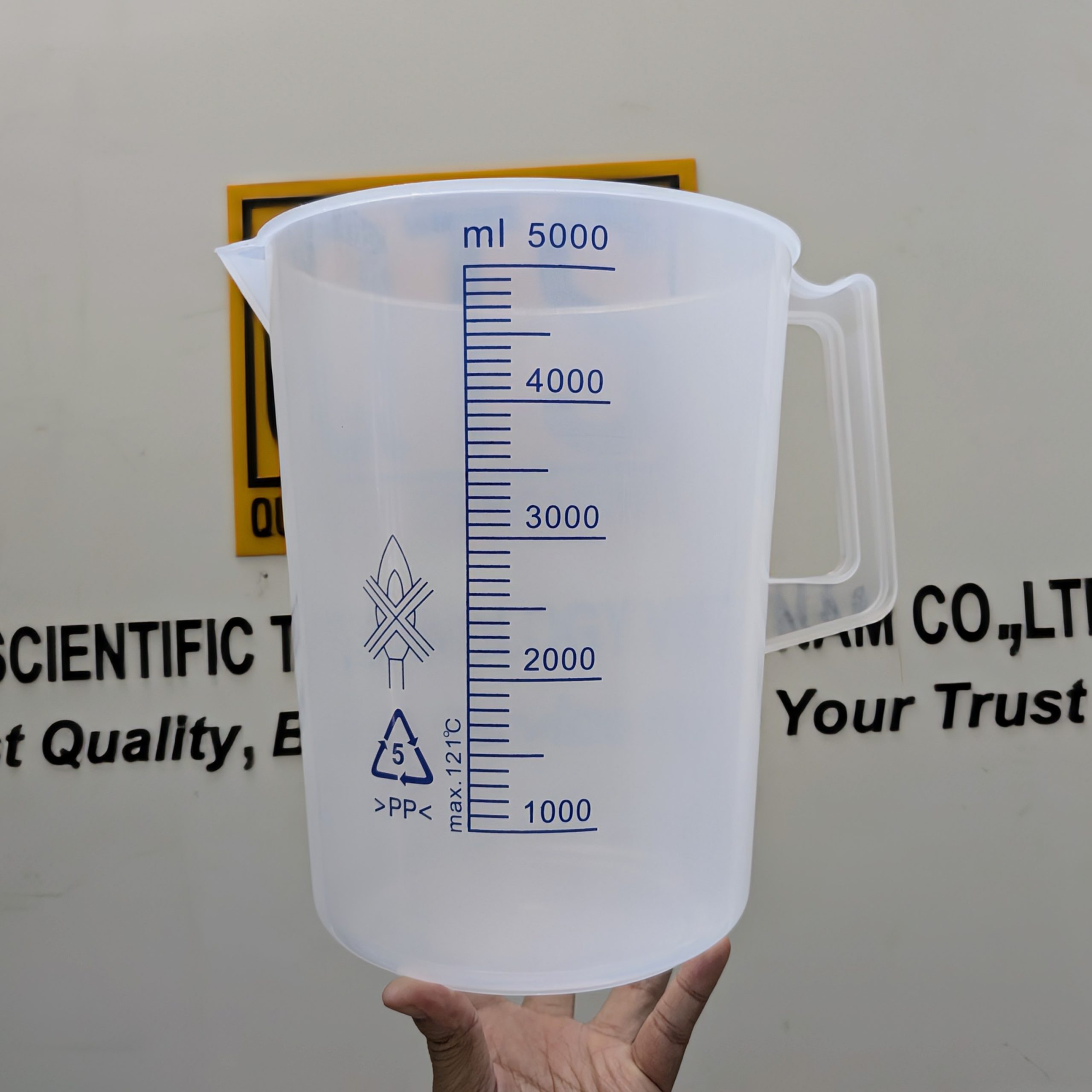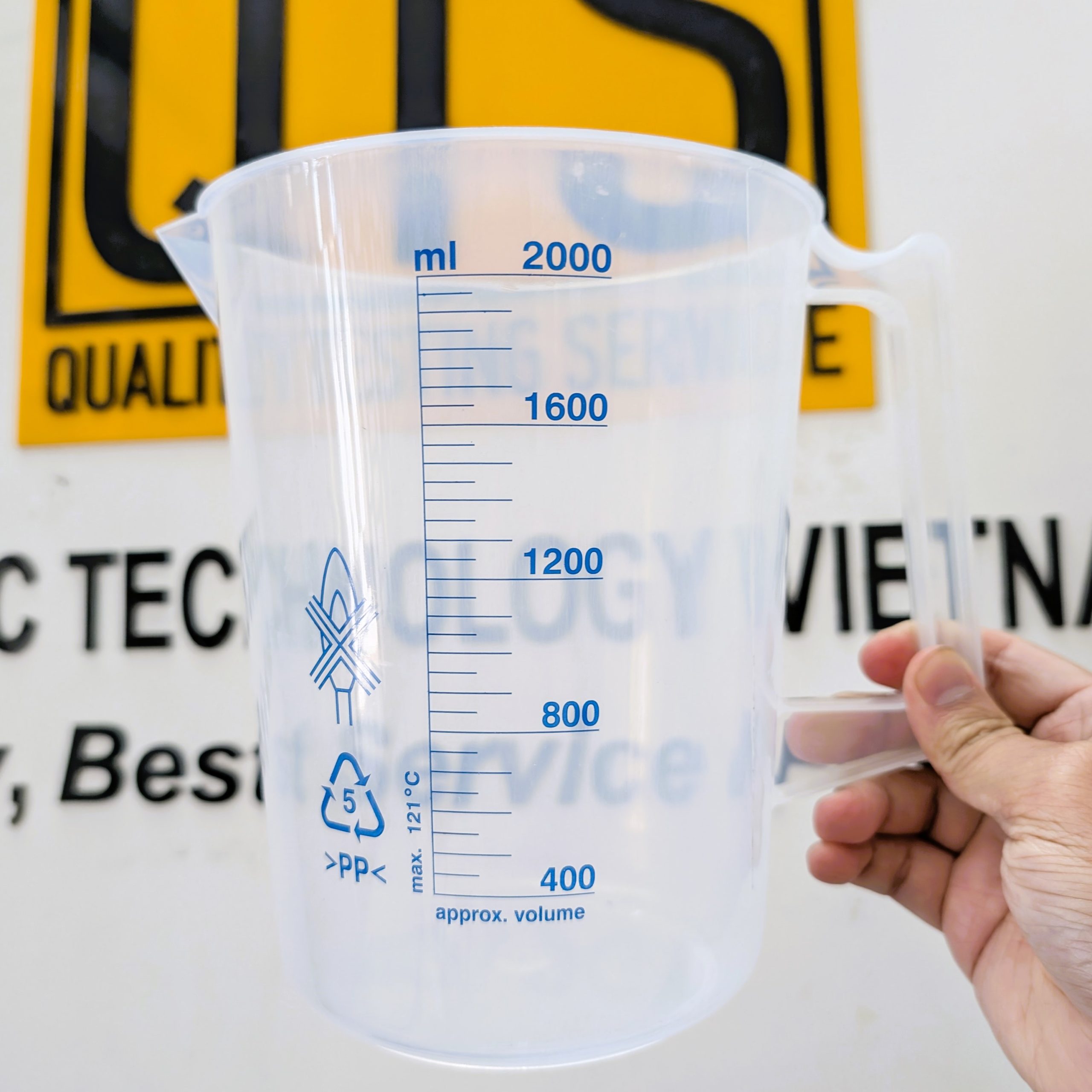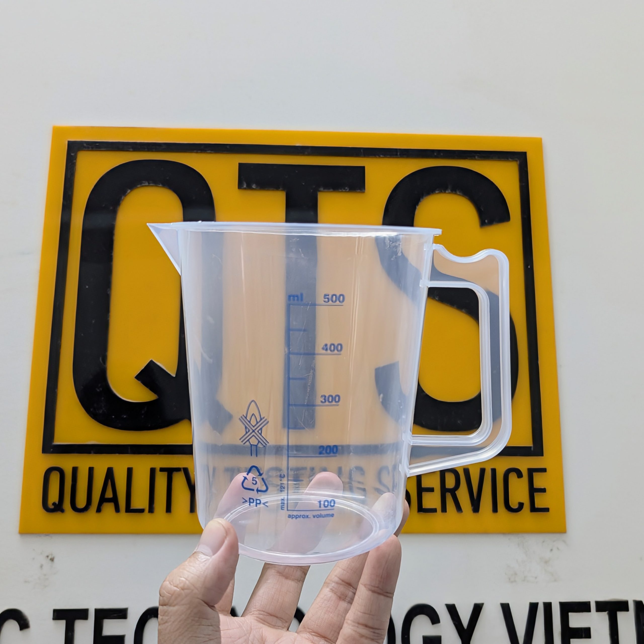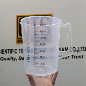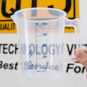 Cốc nhựa có quai, vạch chia sơn màu xanh (thường là nhựa PP hoặc PC) được dùng trong nhiều ngành nhờ đặc tính nhẹ, bền, dễ quan sát vạch: